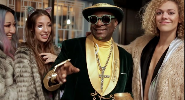 ⬆️一段 2017 年 Player’s Ball (在芝加哥举办的一年一度的皮条盛会)的纪录短片中,传奇大哥,也是 Player’s Ball 的发起人 Bishop Don Magic Juan 雍容华贵的样子会让你无法移开眼睛,他的优雅和拿捏适度的高傲跟街头式的野蛮粗鲁完全不同。